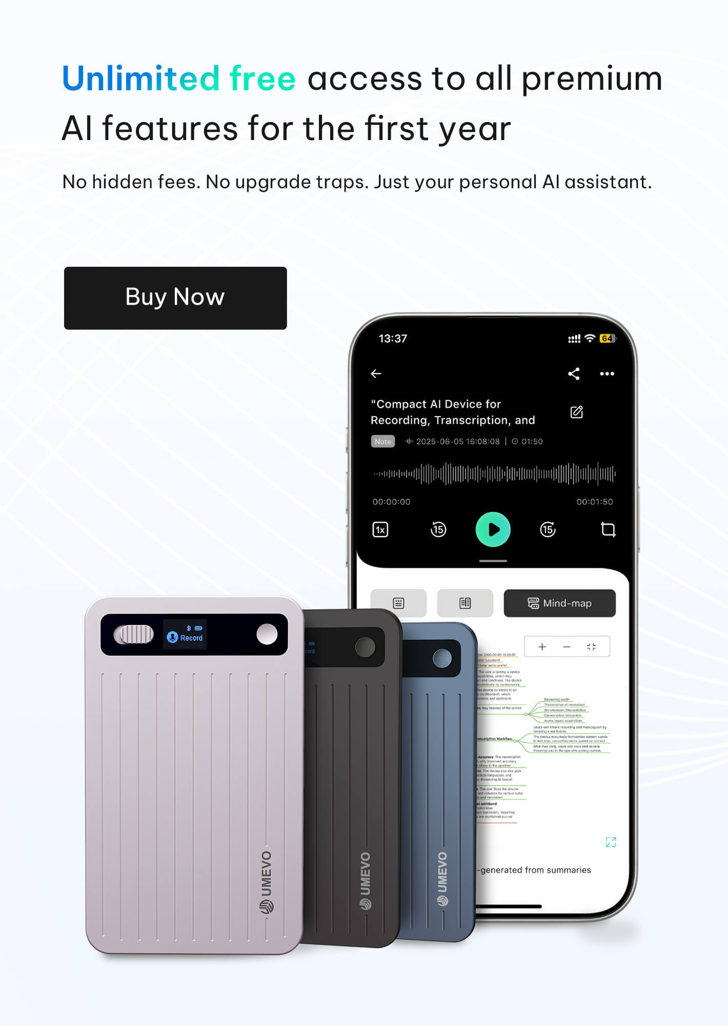 Umevo AI Voice Recorder – Smartest Recorderwith Real-Time Transcription & ChatGPTIntegration!