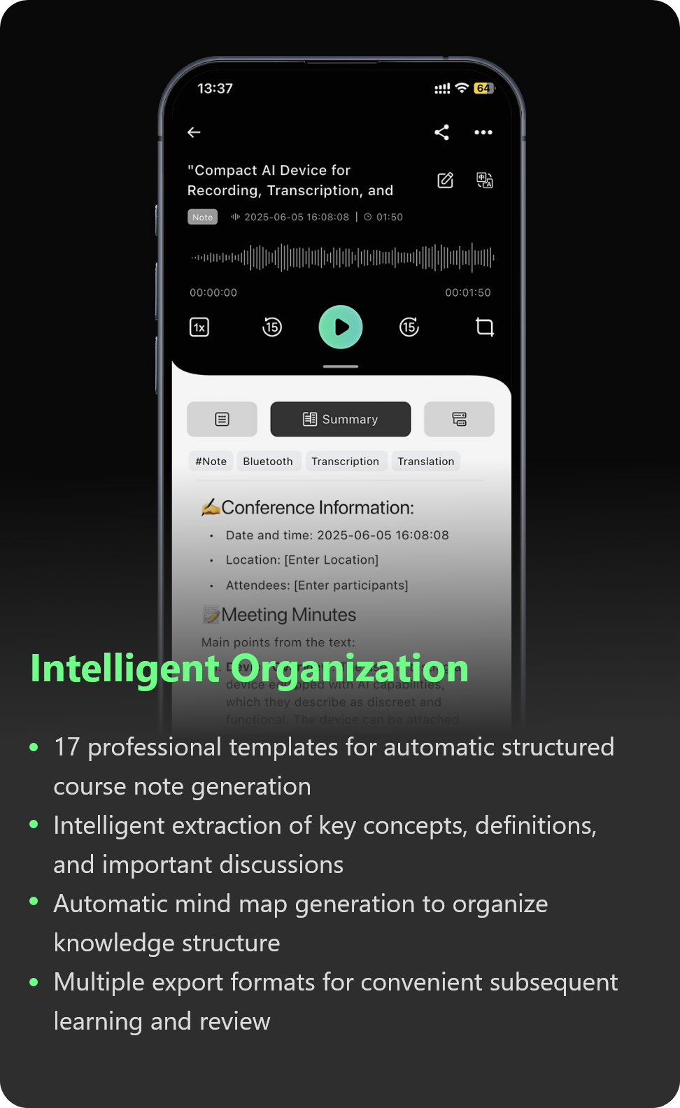 UMEVO Note Plus is perfect for various academic scenarios including university classroom lectures, seminars, online courses, academic conferences, and training sessions. Whether it's science, humanities, or professional skill training, it provides clear recording and accurate transcription, especially suitable for courses requiring extensive professional terminology and complex concepts.